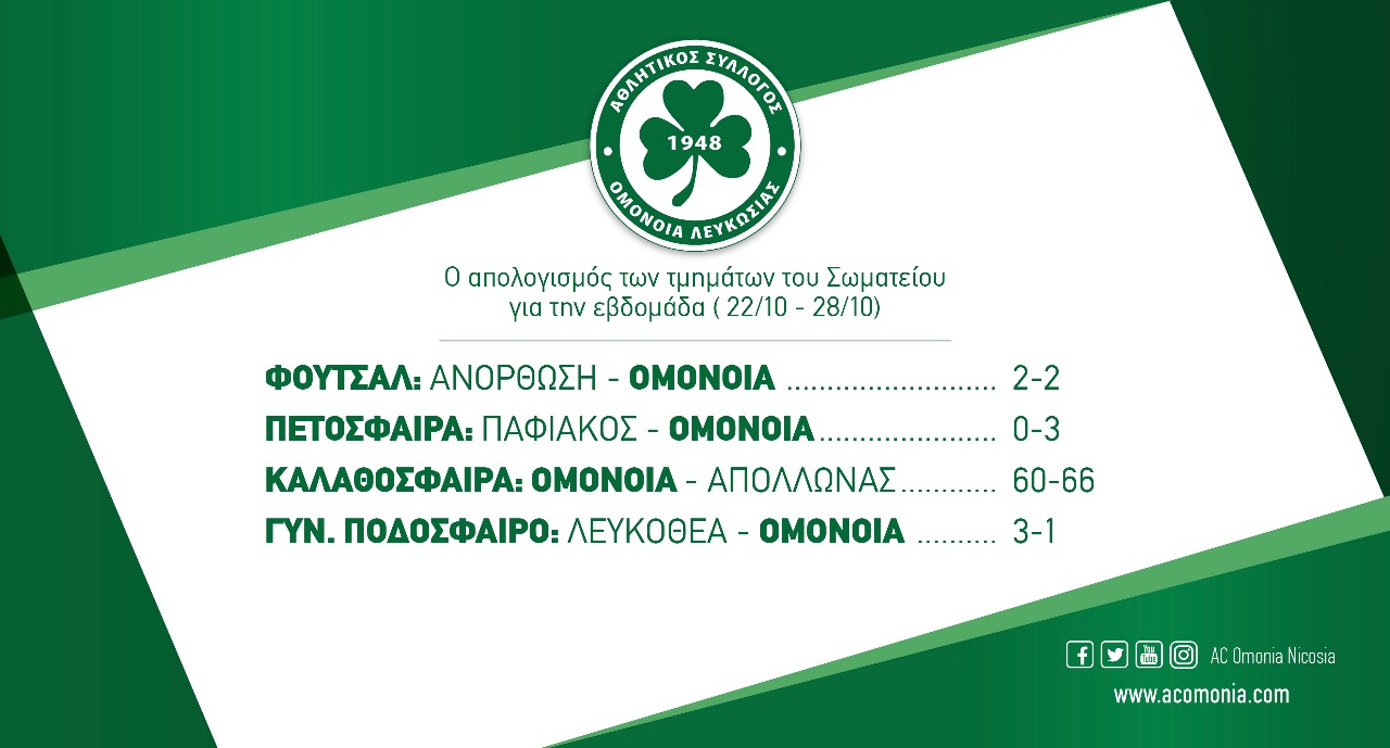 Η γυναικεία ομάδα ποδοσφαίρου έχασε με 3-1 από τη Λευκοθέα. Οι «πράσινες» έχουν 7 βαθμούς σε πέντε αγώνες και βρίσκονται στην 5η θέση.