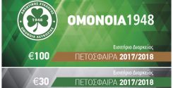 Εισιτήρια διαρκείας Gold Card Member και Κανονικά από το τμήμα πετόσφαιρας της ΟΜΟΝΟΙΑΣ, για την...