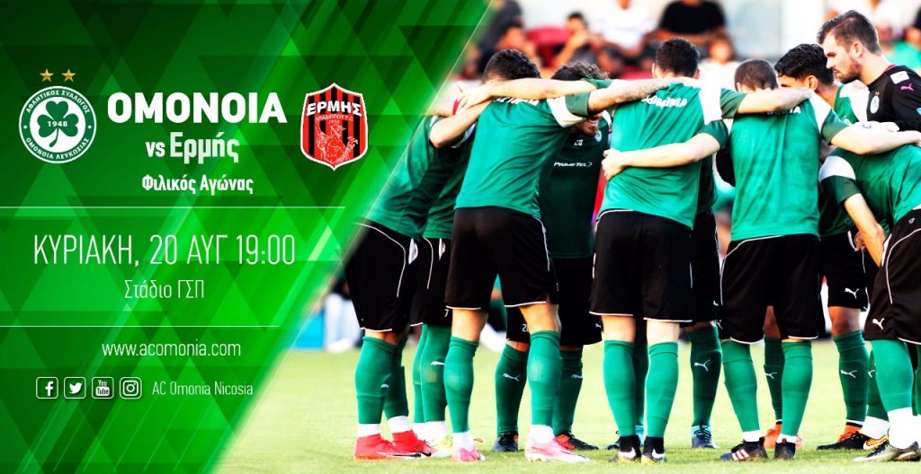 Φιλικό αγώνα με αντίπαλο τον Ερμή Αραδίππου θα δώσει η ΟΜΟΝΟΙΑ, την Κυριακή, 20 Αυγούστου, στις 19:00, στο στάδιο ΓΣΠ.